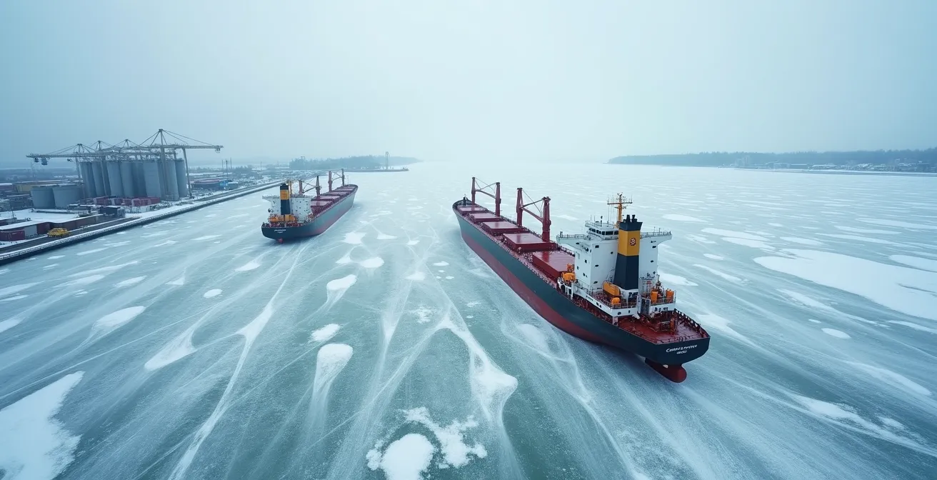 Chaque automne, le même compte à rebours s’enclenche pour tout industriel des Grands Lacs : les glaces arrivent, et avec elles, la fermeture de la Voie maritime du Saint-Laurent. Cette interruption de trois mois n’est pas une surprise, mais sa gestion reste un défi majeur qui menace directement la production au sortir de l’hiver. L’anxiété de voir une ligne d’assemblage s’arrêter en mars par manque de matières premières est une préoccupation constante.