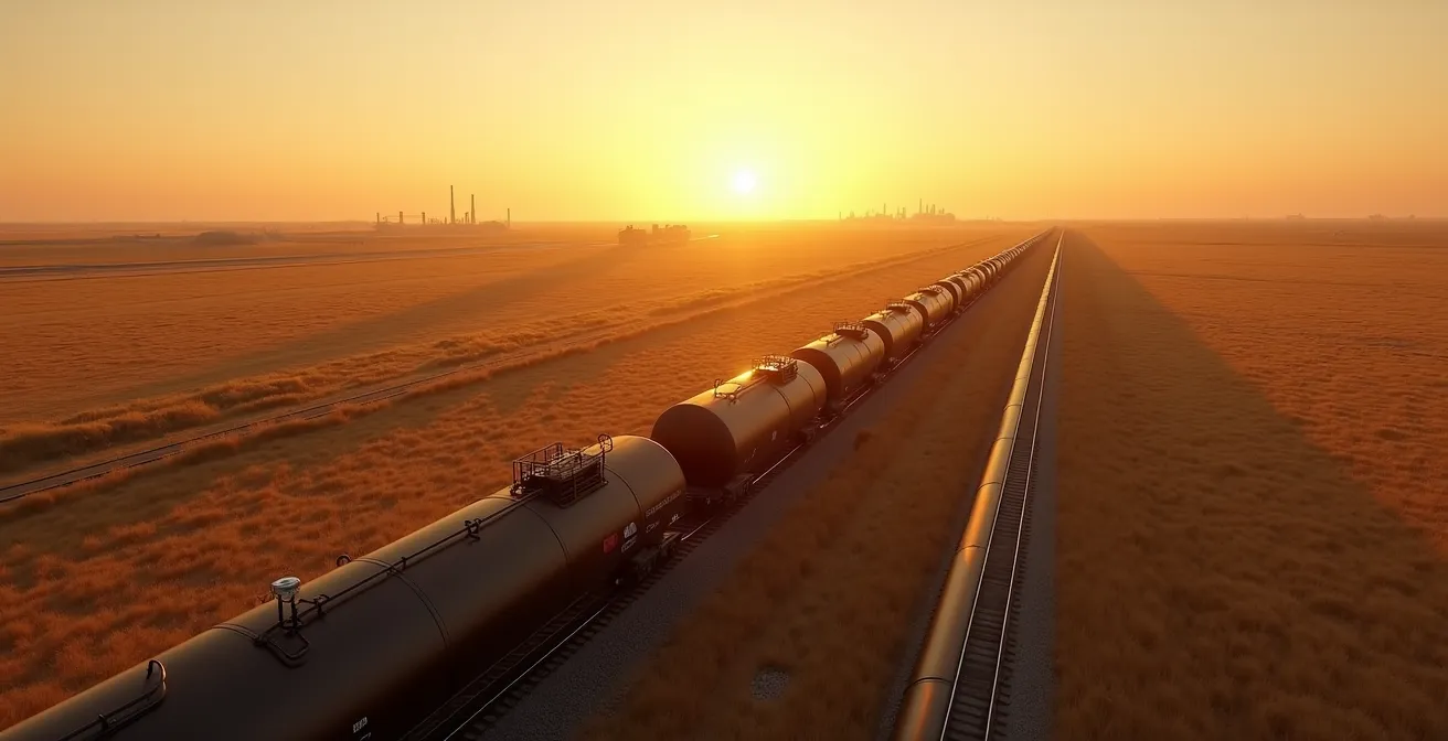 Le différentiel de prix entre le pétrole lourd de l’Ouest canadien (WCS) et le brut de référence américain (WTI) est bien plus qu’un indicateur pour les traders. Pour un gestionnaire HSE ou communication, il est le point de départ de l’arbitrage risque-coût qui conditionne toute votre stratégie de transport. Lorsque les pipelines sont saturés, cet écart de prix a tendance à s’élargir, rendant le transport par rail, bien que plus coûteux, économiquement viable pour atteindre des marchés plus rémunérateurs. Cette pression économique a un impact direct sur votre exposition au risque.